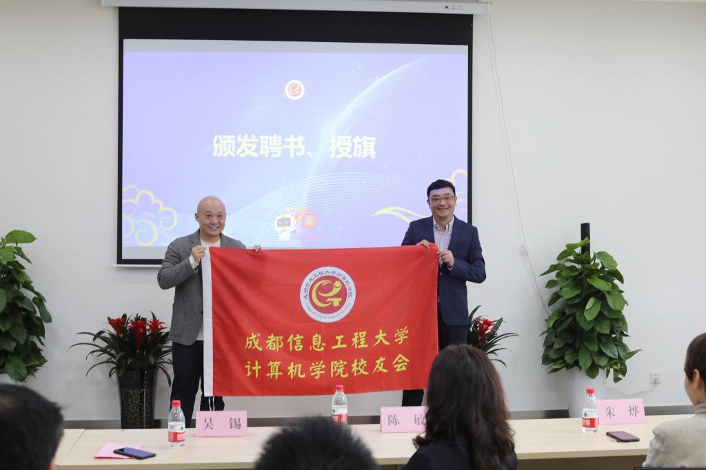 校友会章程》,产生了校友会第一届理事会名单,张斌校友任会长,贺海智、吴光泽等7名校友任副会长,张薇校友任秘书长,王可、周薇等7名校友任副秘书长。会上,陈敏书记、冯翱副院长、朱烨副院长、原计算机系书记阮晓东分别为校友会会长和秘书长、副会长、副秘书长、理事代表颁发聘书,吴锡院长为校友会授旗。