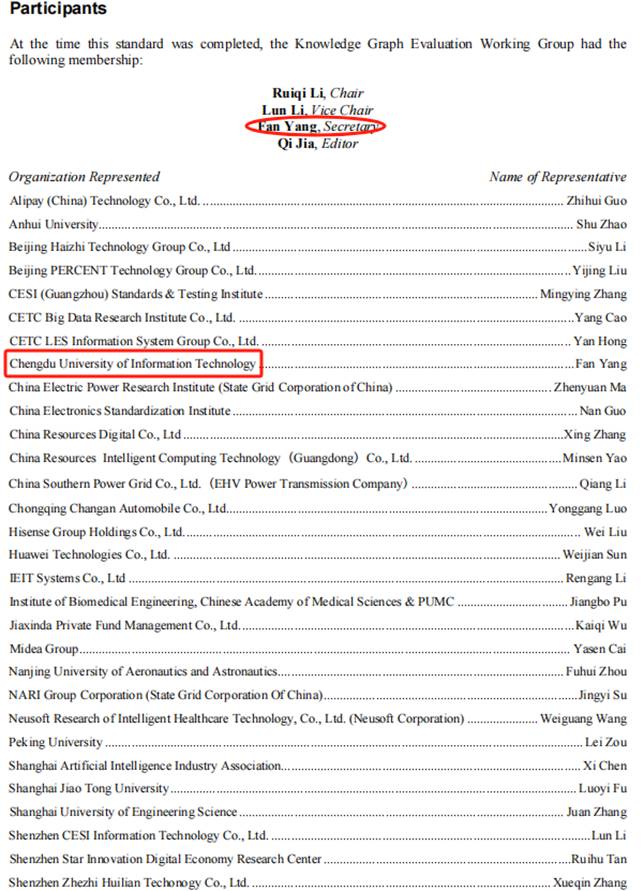 杨帆副教授代表成都信息工程大学参与了本标准的制订,并担任该标准工作组秘书。