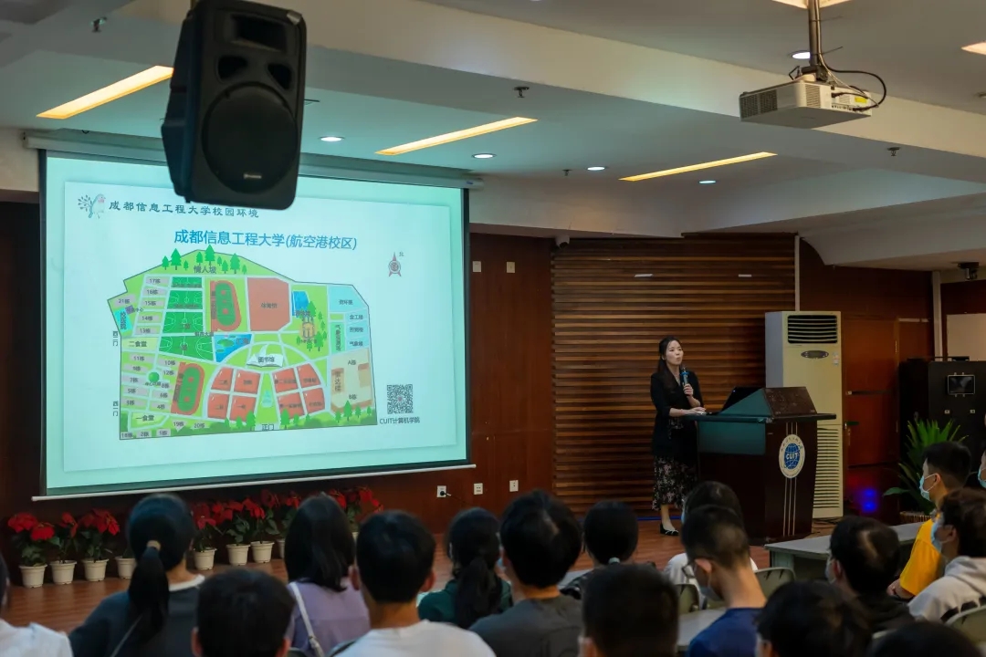 罗茜老师为新生们介绍了校内外环境,成都优美的景点以及各种特色小吃。