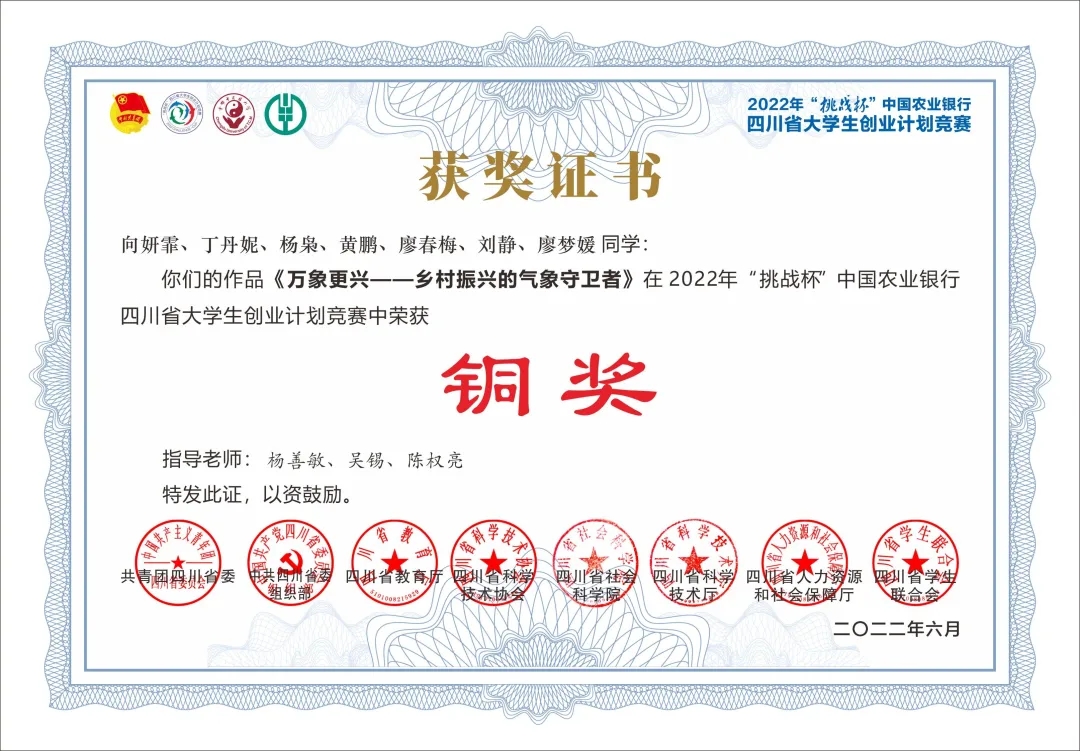 在第八届四川省国际“互联网+”大学生创新创业大赛中,我院代表学校参赛的数支队伍斩获佳绩,在高校主赛道取得了1银8铜的好成绩,在“青年红色筑梦之旅”赛道也表现不凡,荣获1银。与此同时,我院在2022年“挑战杯”四川省大学生创业计划竞赛中也毕露锋芒,荣获2银2铜的优秀成绩,又一次突破了我院在“挑战杯”系列竞赛中的获奖数量。