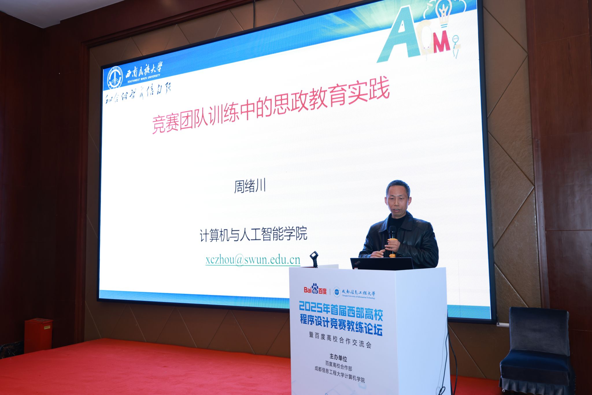 西南民族大学周绪川教授,分享了“竞赛团队训练中的思政教育实践”的经验。针对集训队学生训练热情下滑等问题,周教授介绍了如何通过有效激励措施,激发学生的学习积极性,并将思政教育融入竞赛团队训练,实现人才培养与竞赛成绩的双提升。
