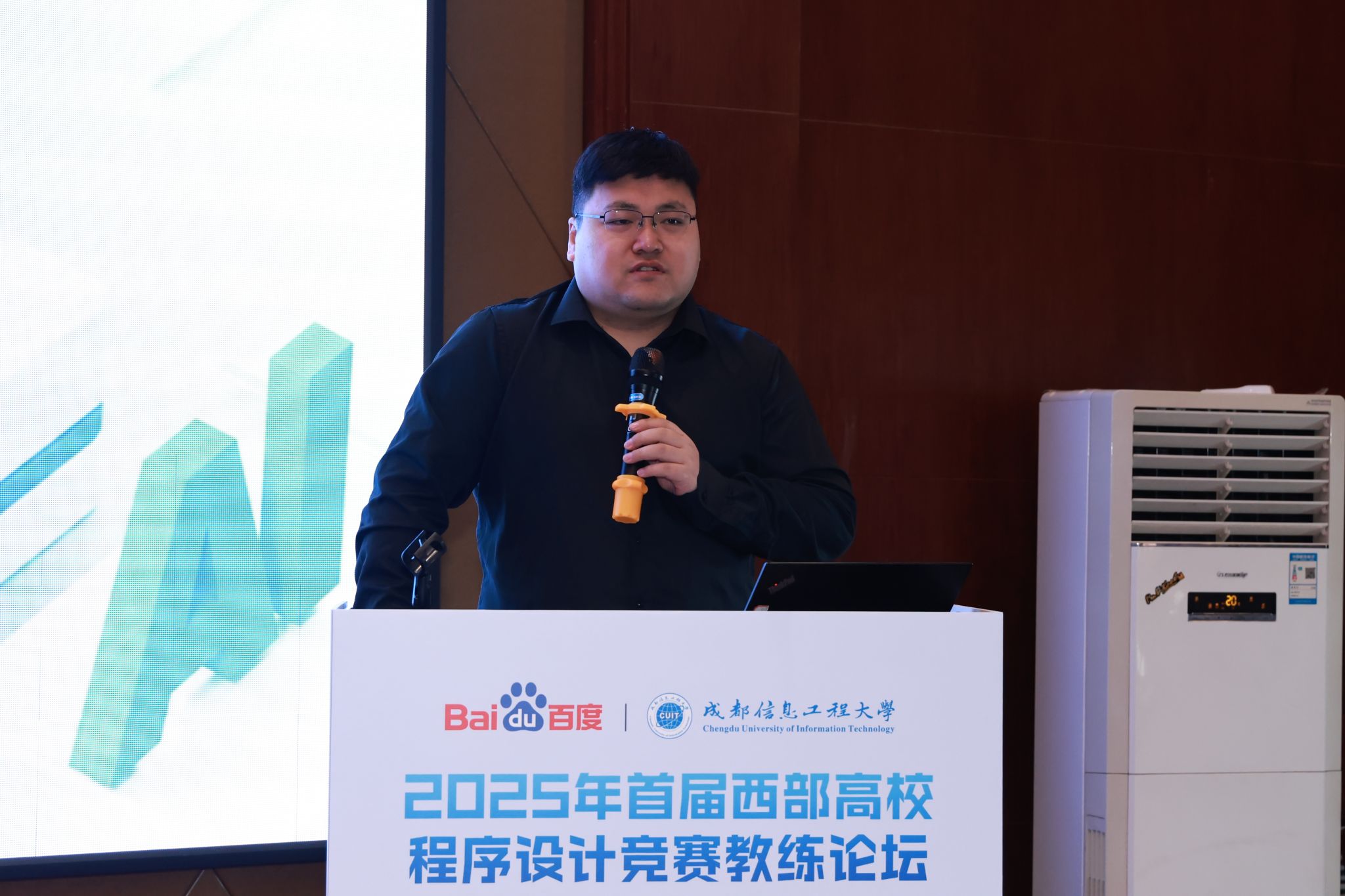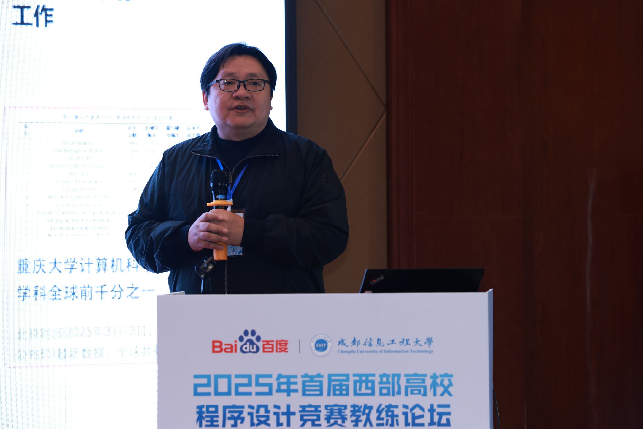 副院长朱烨发表开幕致辞。朱院长对与会嘉宾表达了热烈欢迎,并着重强调了程序设计竞赛在高校人才培养中的重要作用。随后,百度集团高校合作部高级经理房暖东上台致辞,阐述本次会议对推动高校程序设计教学、竞赛发展的积极意义。