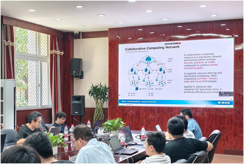 提交的新的IEEE标准提案Standard for Collaborative-Computing-Network-Oriented Knowledge Graph(面向协同计算的知识图谱标准),针对协同计算网络建模的诸多问题,拟提出一个准确、细粒度、通用的协同网络动态知识图谱模型,提供面向协同计算网络的知识图谱构建方法和规范,并给出知识图谱在协同计算网络管理与优化中的应用参考方法。该提案得到了参会专家的一致认可,顺利通过审议,接下来将进入IEEE标准立项流程。