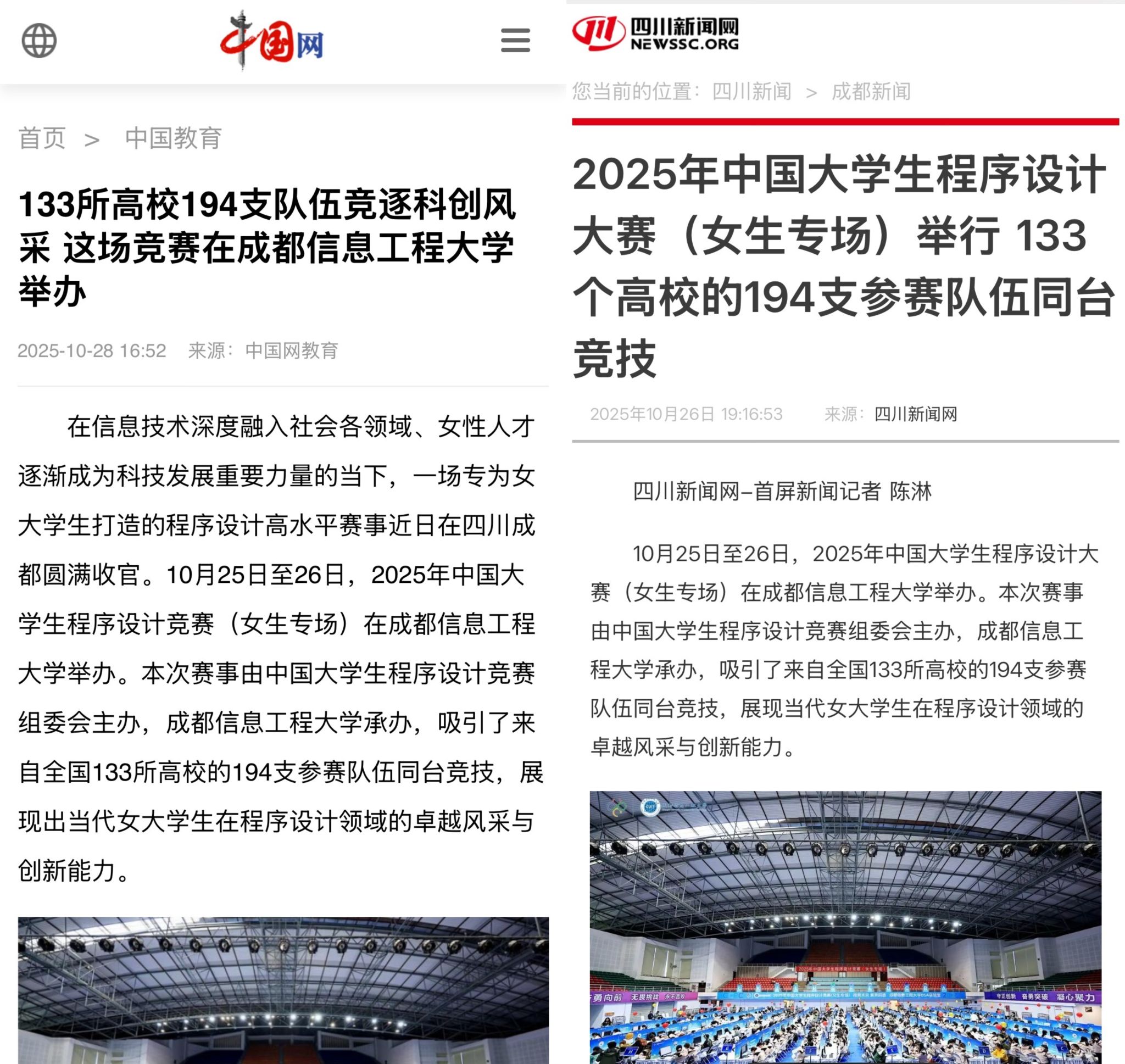 在计算机领域人才培养、技术支撑及大型赛事承办中的高水平。赛事盛况获中国网、四川新闻网、四川教育电视台等多家媒体专题报道,引发广泛社会关注。