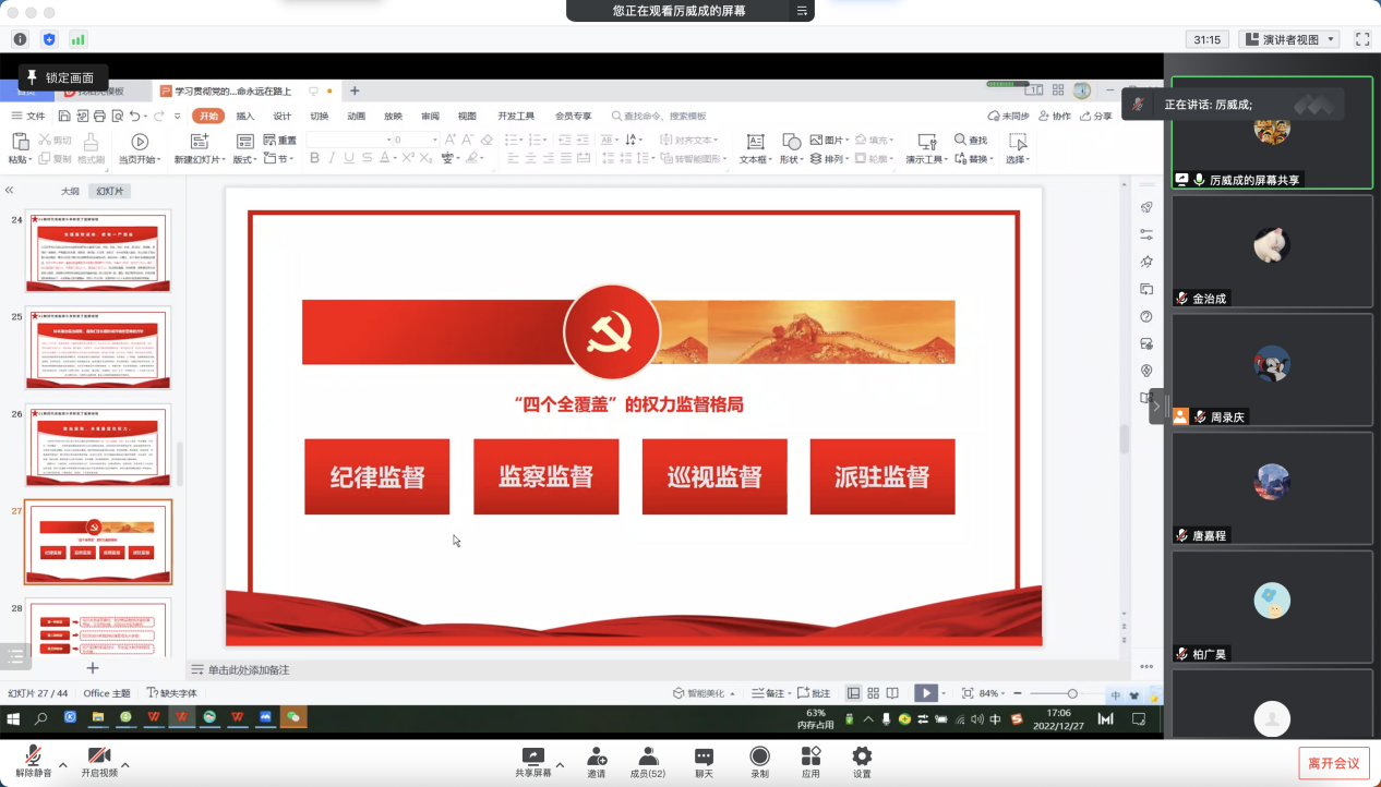 12月27日下午,体育博彩公司排名 研究生第二党支部通过腾讯会议开展“学习贯彻党的二十大精神”主题教育专题党课。本次党课由体育博彩公司排名 党委副书记兼支部书记厉威成主讲,主题为《学习贯彻党的二十大精神——党的自我革命永远在路上》,支部全体党员及入党积极分子参加党课。