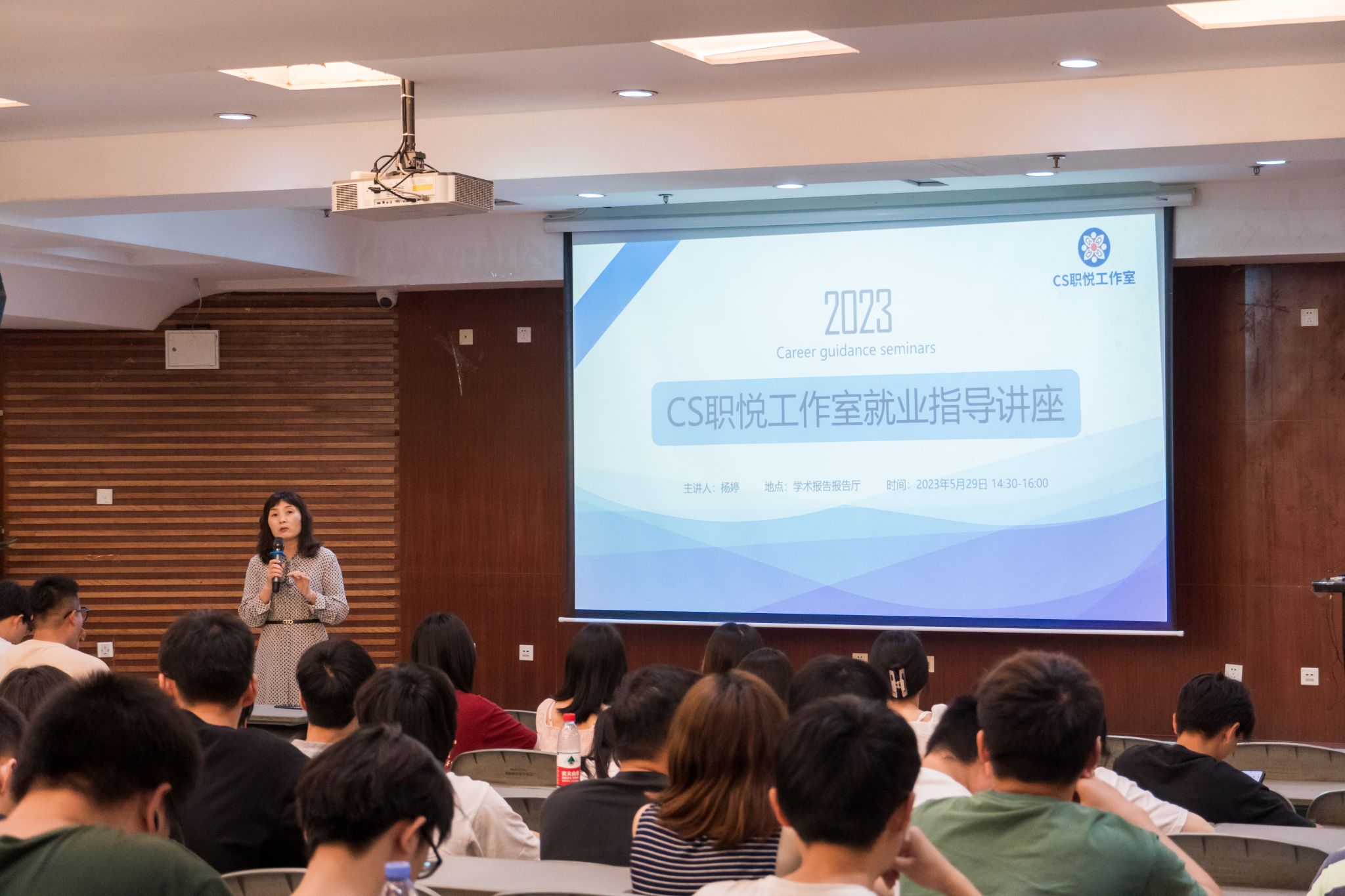 主办的CS职悦工作室就业指导讲座在学术报告厅如期举行。本次讲座由陈敏书记主持,邀请软通动力校企合作经理杨婷老师作为主讲人,进行了关于本科学生当下就业形势及高质量就业的关键要素为主题的讲座。