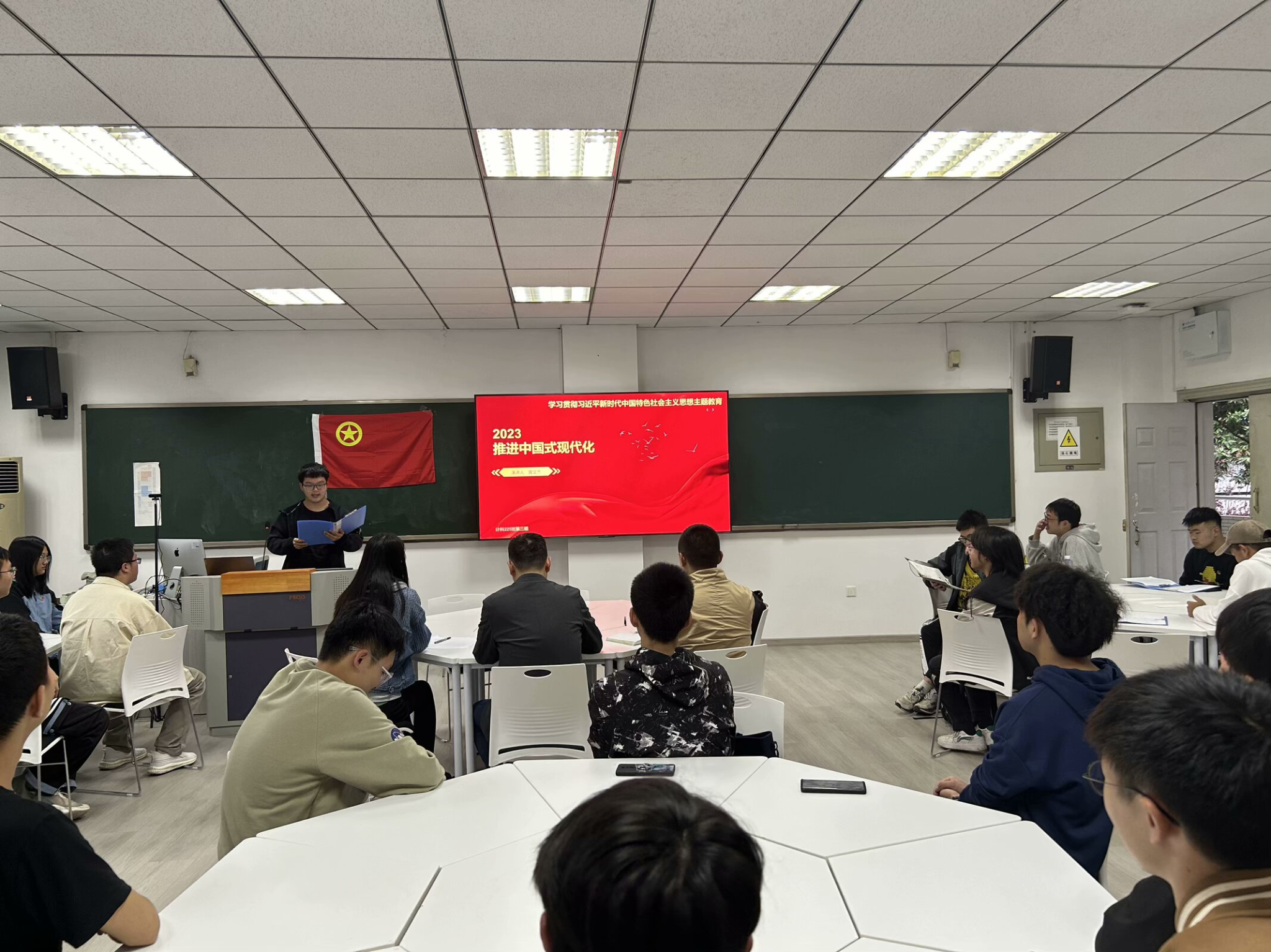 党委副书记厉威成分别对专题学习进行了总结并提出要求,新时代的大学生应积极学习贯彻习近平新时代中国特色社会主义思想,加强理论学习,落实行动实践,立足自身,努力学习,在担当中历练,在尽责中成长,在推进强国建设、民族复兴伟业中接续奋斗!同学们也表示,作为新时代青年,当铭记历史,把握现在,着眼未来,积极担负责任使命。坚定不移地听党话、跟党走,做有理想、敢担当、能吃苦、肯奋斗的新时代好青年!