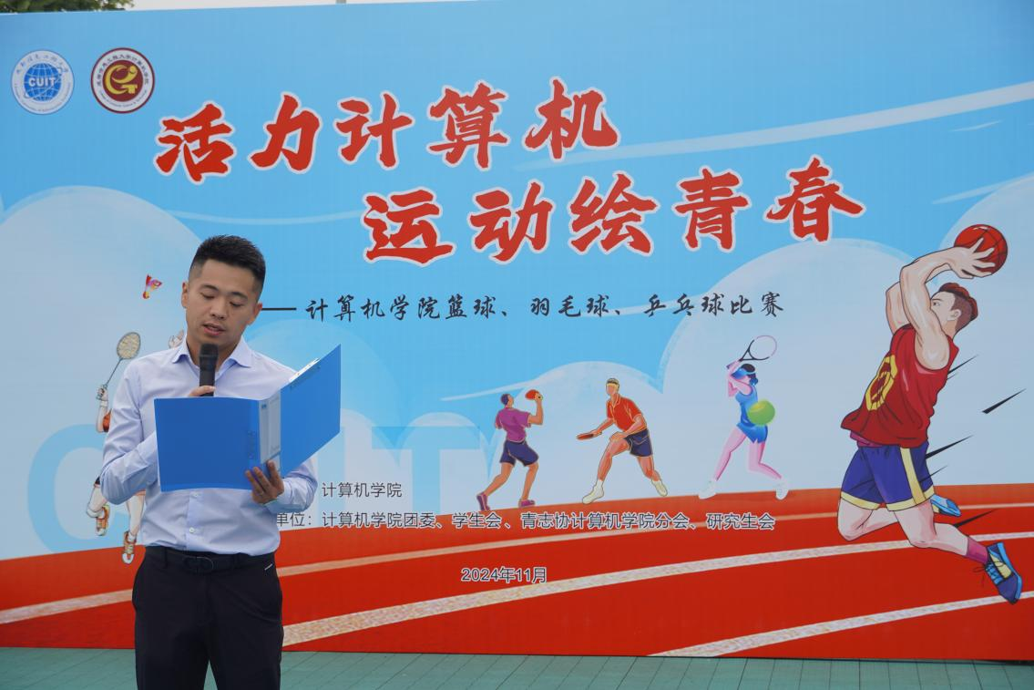 启动仪式上,倪涛致开幕词。他表示体育运动是锻炼体魄、磨练意志的重要途径,计算机学子不仅要能在代码的世界追求知识的深度与广度,更要在日常的生活中注重身心的全面发展。同时,倪涛强调,安全永远是比赛的前提,每一位参赛选手都要能严格遵守比赛规则,尊重对手、尊重裁判,用实力说话,用汗水书写青春。