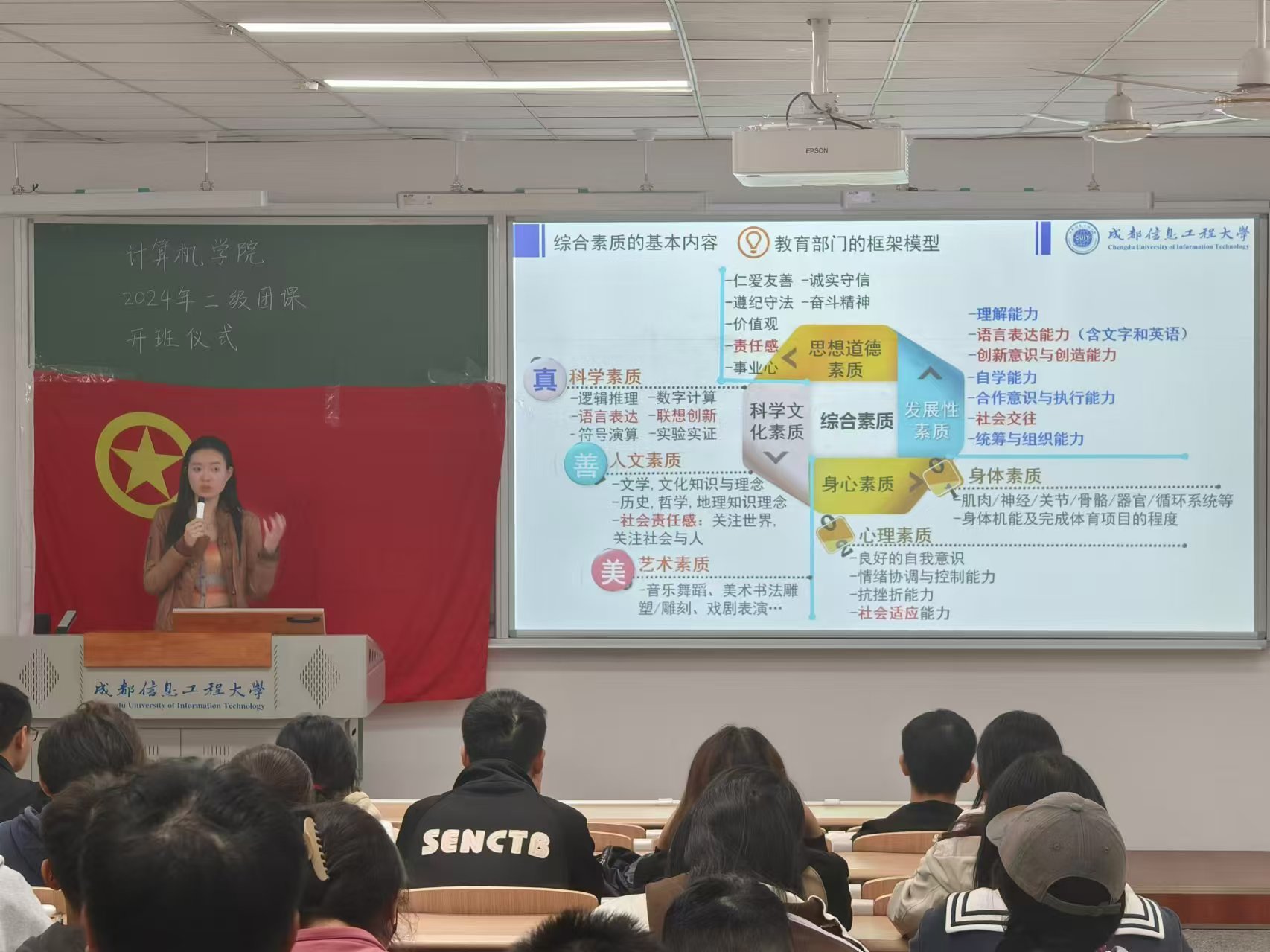 在首次团课中,岳旭媛老师以“做优秀共青团员,积极向党组织靠拢”为主题,从思想建设、学术追求、个人综合素质等多维度进行了深入讲解。岳老师结合自身经验,和同学们分享了在追求个人进步与成长道路上可能遭遇的种种困难,并针对性地提出了一系列解决方案。同学们在课堂中认真听讲,并及时地给予反馈与互动。同学们通过此次团课收获颇丰,认识到自我发展的重要性、自我进步的必要性,同时也更清楚地认识了共青团员这一身份,对党组织更加的崇敬和向往。同学们表示,将明确自己的人生规划和发展方向,不仅在学业上追求卓越,也在兴趣领域不断精进,全面提高自身素质,积极争取加入共青团,努力成为一名优秀的共青团员,并朝着加入中国共产党的目标不断努力。