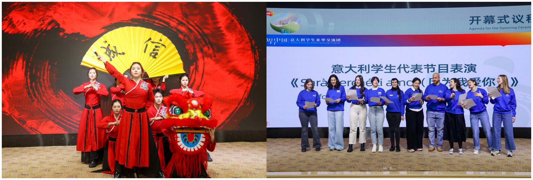致辞环节结束后,中意双方学子带来了精彩的文艺表演,展示了两国独特的文化艺术魅力。随后,参会领导嘉宾向意大利学生赠送活动纪念品,传递出“文明之美,美美与共”的美好寓意。