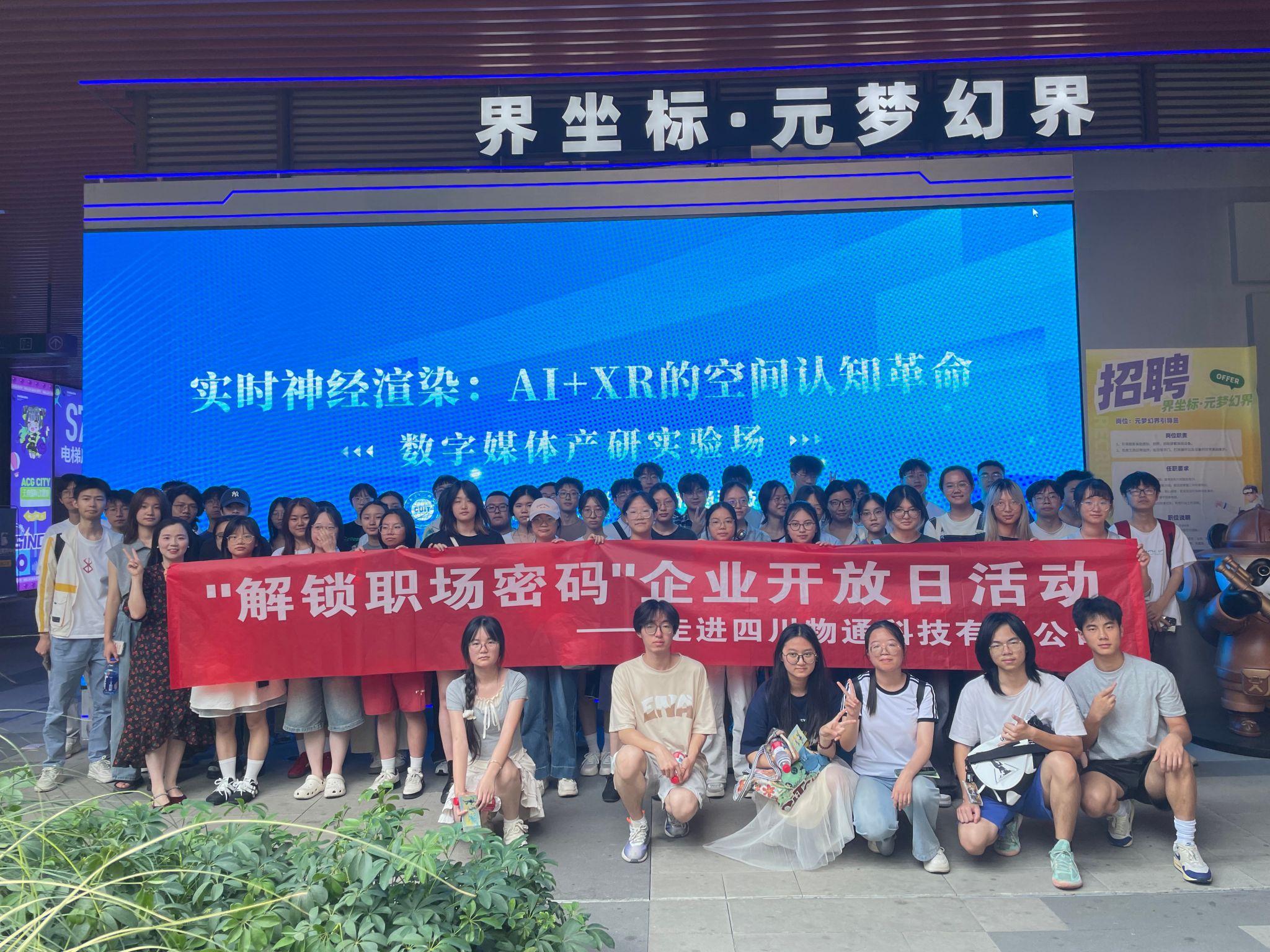 随后同学们来到物通科技位于天府国际动漫城的元梦幻界体验馆进行沉浸式体验。同学们在文创科技融合区充分感受了数字技术如何赋能传统文创,带来全新的“实物+数字”收藏体验,对于数字媒体技术在文化传播与商业创新中的独特价值有了全新的理解。专家通过“AI+XR”技术在文旅场景的实际落地案例,讲解了如何将课堂所学的人工智能、计算机视觉、交互设计等知识与扩展现实技术结合。在XR体验区,同学们体验了AR、MR、VR设备,零距离感受了不同层级“现实”技术带来的感官冲击和交互魅力。