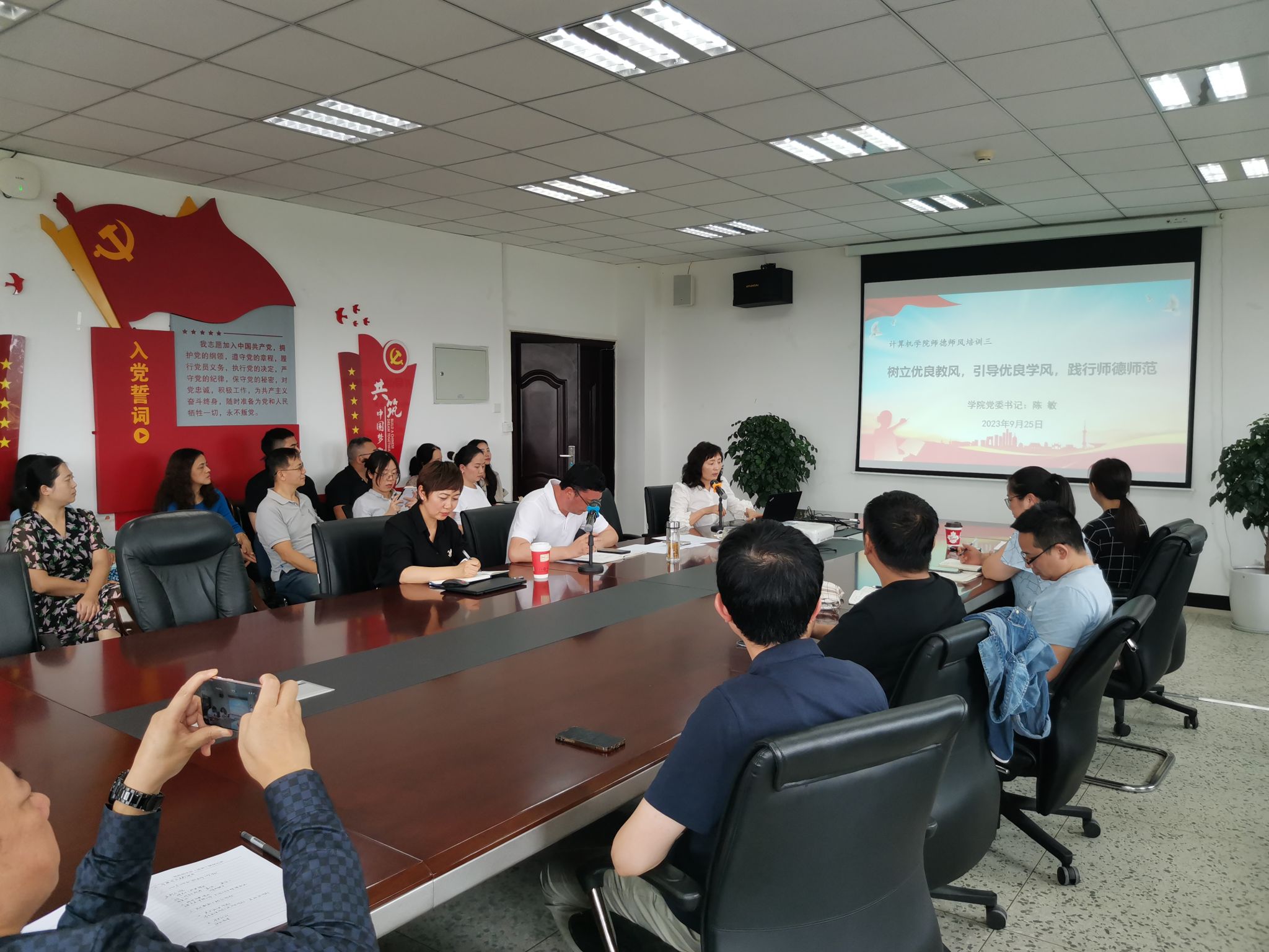 为不断加强体育博彩公司排名 师德师风建设,体育博彩公司排名 于2023年9月25日下午在信达楼A311对全体教师开展德师风专题培训,培训主题为:树立优良教风、引导优良学风、践行师德师风,培训会由体育博彩公司排名 党委书记陈敏主讲。培训会现场首先,陈敏书记带领全体教师再次领悟了学校“爱生、敬业、求实、创新”教风的深刻内涵,并要求老师们在工作中要…[详细] 2023年09月25日