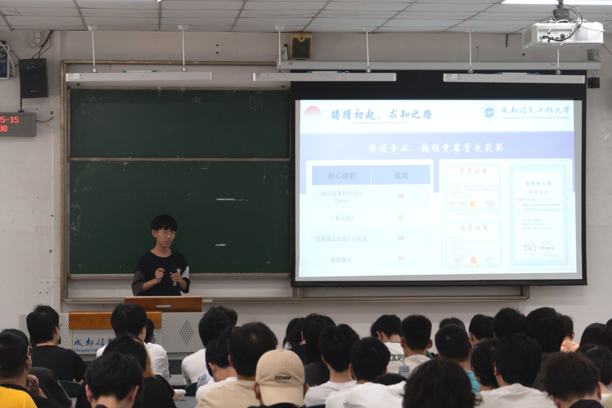 在初夏的暖阳下,成都信息工程大学DSA数据结构与算法实验室于2024年5月12日下午,在航空港校区志学楼(第一实验楼)H5201成功举办了2024年度实验室新老生交流会。此次活动不仅是知识的交融,更是实验室精神与文化的传承与发扬。在交流会的经验分享环节,首先由2023年毕业并成功考入电子科技大学的两位实验室学长带来了详…[详细] 2024年05月13日